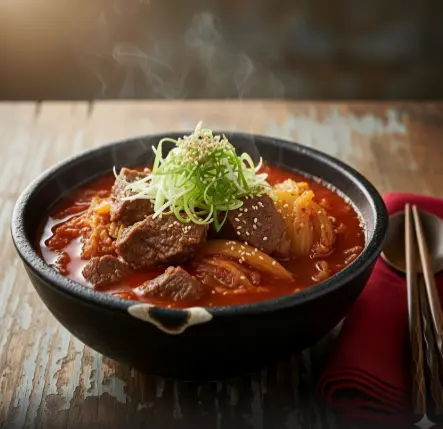 von Kimchi und der intensiven Würze von Knoblauch. Dieses Gericht